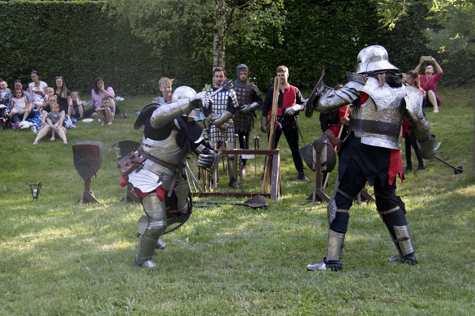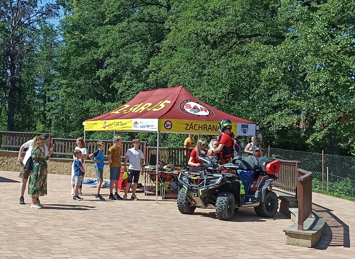 O zahájení odpoledního programu se postarala paní ředitelka PhDr. Jana Pilná, PhD. s moderátorem Slávkem Bourou. Následovalo vystoupení pěveckého sboru Hrádeček pod vedením paní Hany Prchalové a vystoupení dětí ze ZŠ Bečváry pod vedením paní učitelky Marie Šedivé. Zpívat a tančit se už nepřestalo. Všechny přítomné rozpohybovala hudební skupina Eso, Standa Hložek, nebo zpěvák a hudebník Vašek Janoušek. Na Mistra Karla Gotta jsme zavzpomínali v bloku jeho písniček v podání skvělého Míly Hartmana a Vzpomínky na Waldemara Matuška přestavil Vladimír Walda Nerušil. Ukázky hipoterapie předvedli zástupci ze Stáje Rozárky z Bykáně. Na koníky se čekala fronta, většinou děti, které využily možnosti podívat se na svět z koňského hřbetu. Se zvířátky k nám zavítalo Sdružení pro hipoterapii Dítě a kůň z Miskovic. Roztomilé ovečky a kozičky si hověly v připravených ohradách v zahradě, kde si je návštěvníci mohli pohladit. Děti se mohly vydovádět na trampolíně či skákacím hradu, který nám poskytla paní Alena Trojanová ze společnosti Era Reality. Zajímavé ukázky předvedla Policie ČR, kde byla možnost prohlédnout si služební vozidlo, zkusit neprůstřelnou vestu, či potěžkat zbraň. Představil se nám pro mnohé neznámý záchranný systém Czech SAR Team. Czech SAR Team je nezávislým spolkem typu SAR (Search and Rescue), jehož hlavním účelem je pátrání po pohřešovaných a ztracených osobách po celé České republice za pomoci čtyřkolek a další techniky. Nabídku nevšedního zážitku – svezení se na čtyřkolce, využila řada návštěvníků. Napínavou show předvedli Páni z Michalovic, kteří vystoupili se svou ukázkou historického šermu. Keramická dílna předvedla své výrobky, které bylo možno zakoupit. Prohlídka zařízení byla formou virtuální prohlídky, která probíhala celé odpoledne v altánu na nádvoří. Nahlédnout bylo možno do připravených kronik a fotodokumentace. Nechybělo ani občerstvení. Hosté mohli ochutnat Postřižinské pivo, občerstvit se kávou, čajem nebo limonádou. K zakousnutí byl vynikající domácí štrůdl od našich kuchařek a z grilu se podávaly špekáčky, klobásy nebo maso. Své pekařské umění přijela ukázat pekárna z Domova Laguna Psáry. Kdo chtěl ochutnat cukrovinky či párek v rohlíku, mohl tak učinit na nádvoří. Každý si tak podle chuti mohl vybrat.