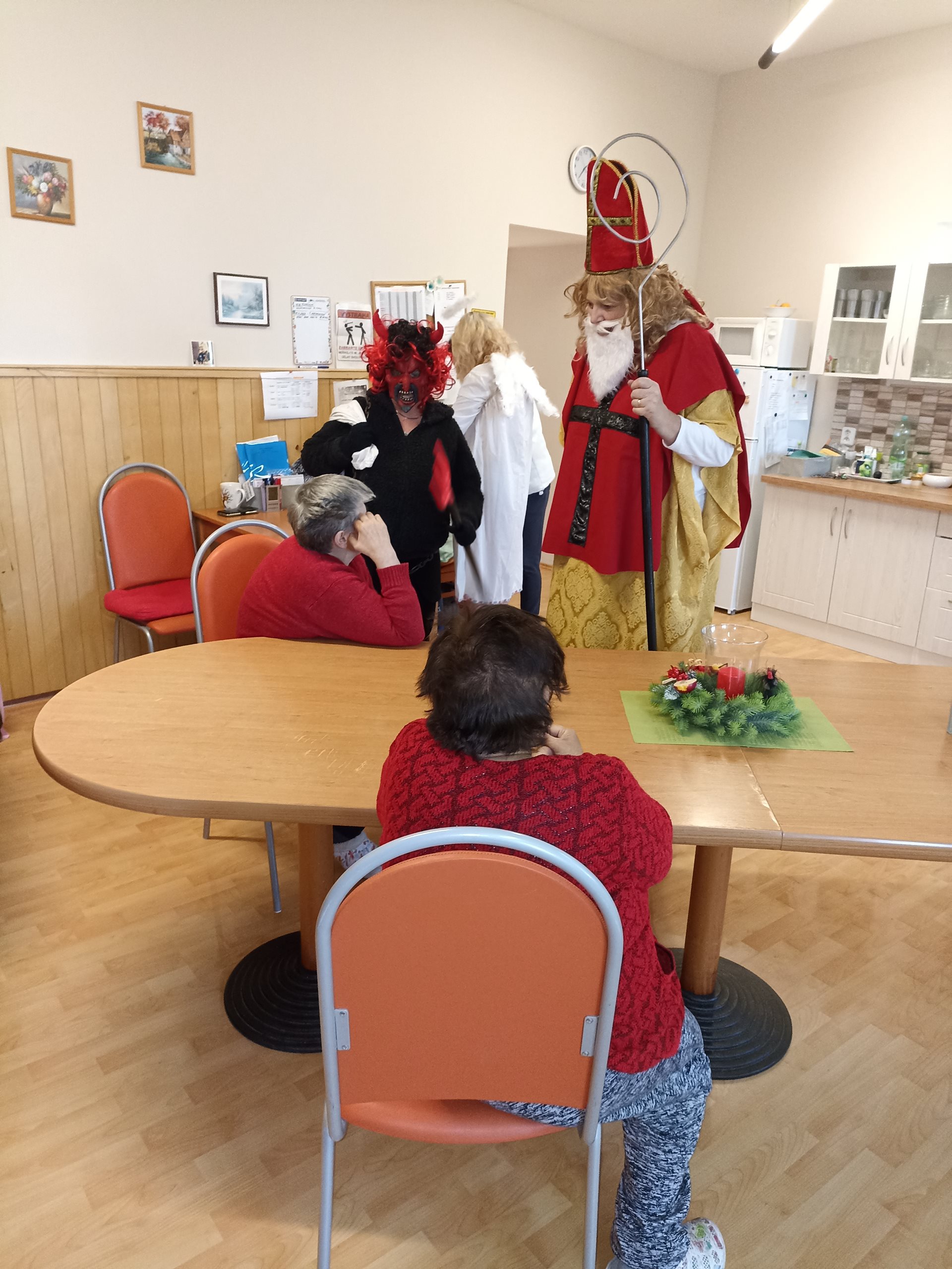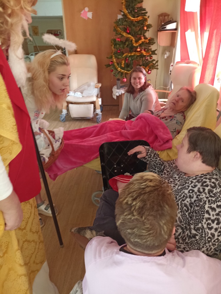 I do Domova Na Hrádku zavítal jako každoročně Mikuláš, čert a anděl. Uhlí za hříchy, pro některé spíše pro štěstí, nesmělo chybět. Mikulášská nadílka byla také připravena pro všechny. Zazněly básničky, písníčky a všichni jsme se odpoutali od každodenních starostí a trochu se odreagovali. Nyní se v adventním čase budeme připravovat a těšit na Vánoce.