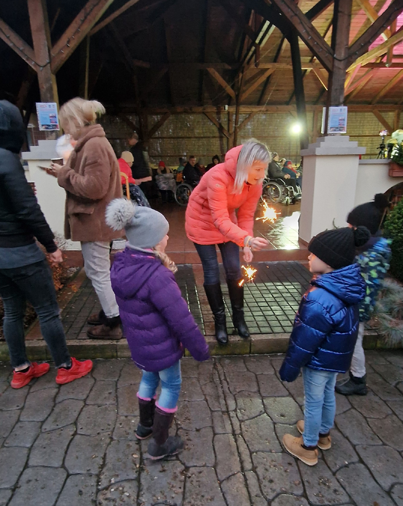 Přesně měsíc do Vánoc, tedy 24. 11. 2022, proběhl adventní koncert a vánoční rozsvícení v Domově Na Hrádku ve spolupráci s obcí Bečváry a městem Zásmuky. V hojném počtu jsme společně mohli vychutnat vánoční atmosféru, kterou zajistil Míla Hartman s písněmi Karla Gotta a pěveckým sborem AMA MUSICA z Lysé nad Labem. Přítomní mohli ochutnat výborné občerstvení od našich kuchařek společně s tradičním punčem nebo svařákem. K zakoupení zde byly výrobky našich klientů, vánoční ozdoby, domácí palačinky či dobroty z pekárny z Psár. Děti si přišly na své s prskavkami, a když se setmělo, společně jsme začali odpočítávat….. Domov se rozzářil pod záplavou světélek. Údiv, úsměv, spokojenost, dojetí, to vše se nechalo vyčíst na tvářích kolem.