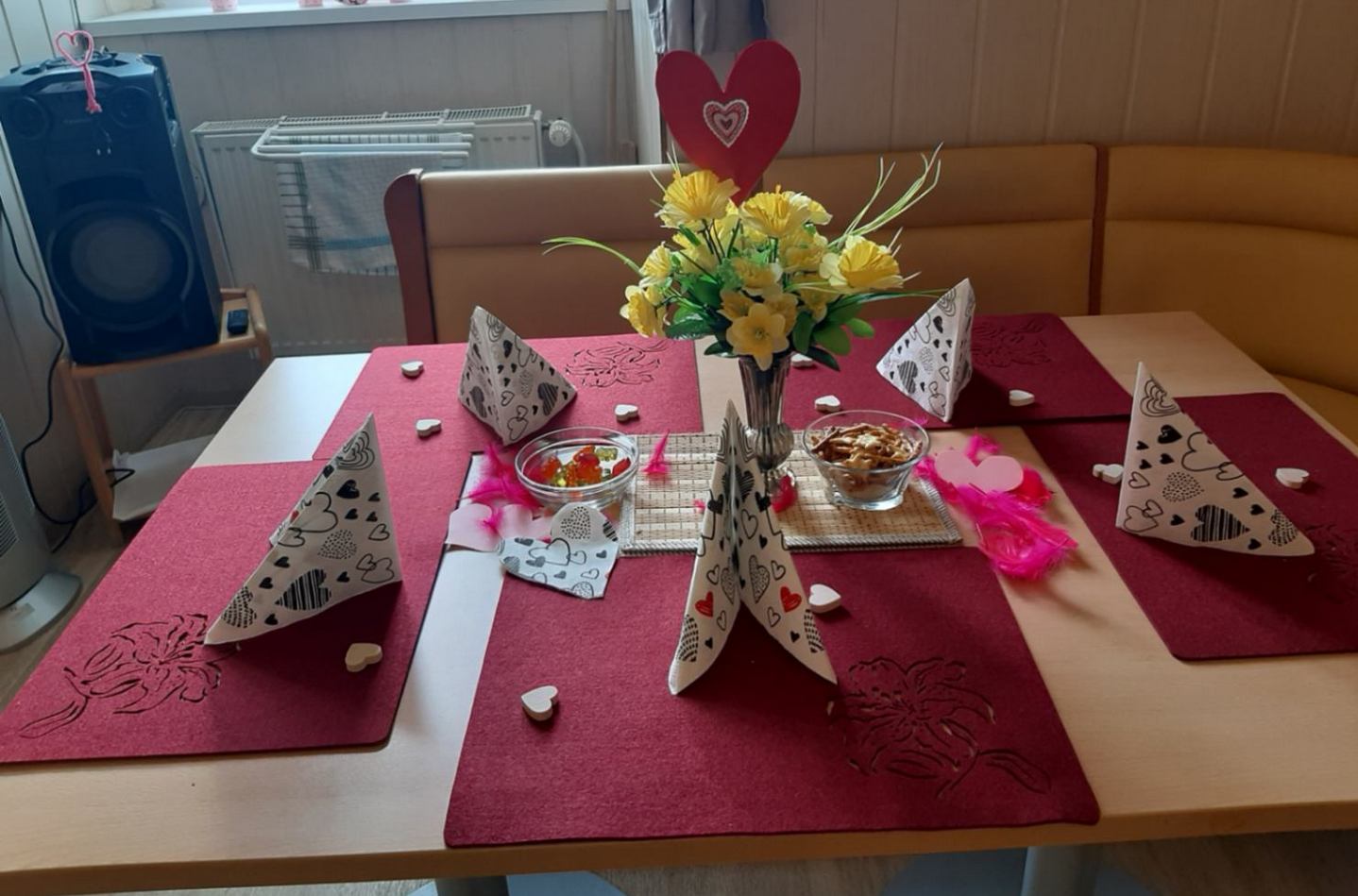 Páteční odpoledne 24. 2. 2023 si naše pracovnice společně s klienty připravili jako valentýnské. Odpoledne se tak zařadilo mezi naše tradiční ,, pátky trochu jinak“, kdy se snažíme prožít den v určitém tématu a stylově. Valentýnské odpoledne bylo plné srdíček, růžové a červené barvy, nechyběly dobroty, hudba a dobrá nálada.