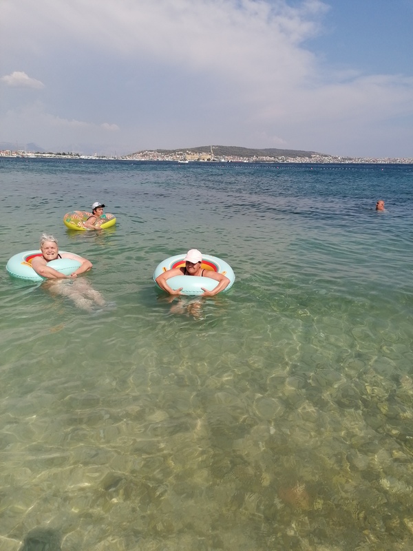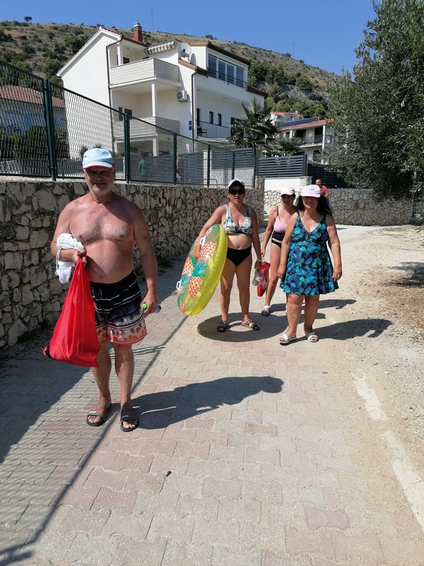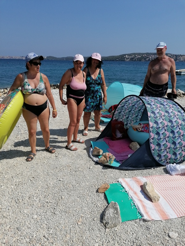 Klienti si sami připravovali za podpory paní ředitelky snídaně, svačiny a obědy. K moři jsme to měli asi 200 metrů, a místy jsme museli vyšlapat docela slušný sráz. V době našeho pobytu bylo neskutečně teplé počasí, takže jsme čas trávili u moře a ve vodě. Někteří poprvé využili na plavání kruh a učili se v něm plavat. Večeře jsme měli v půl šesté v restauraci ZULA a po ní jsme ještě chodili do vody. Ve vile jsme měli horní apartmány, protože pokoje v přízemí obývali klienti z Domova Pod Skalami Kurovodice. S nimi jsme také chodili na pláž a na večeře. Vznikla mezi námi i hezká přátelství.
