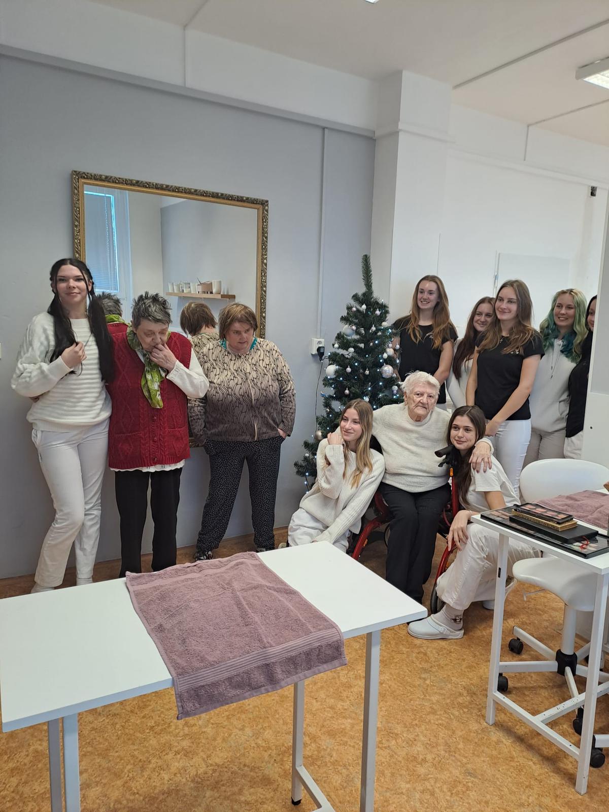 To je přání našich klientek. Škola řemesel v Kutné Hoře jejich přání vyslyšela a v rámci projektu Ježíškova vnoučata splnila. Dvě krásné dopoledne našim klientkám připravily studentky kosmetiček a kadeřnic. Velmi děkujeme paní Barboře Strnadové – učitelce odborného výcviku, která s vedením školy vše domluvila a Ježíškova vnoučata díky ní mohla přání plnit. Návštěvy byly velmi emotivní a na obě strany obohacující. Vážíme si, s jakou pokorou a citem se děvčata přání zhostila.