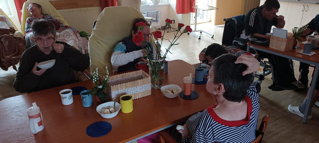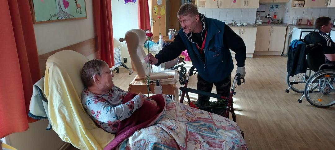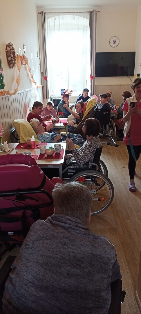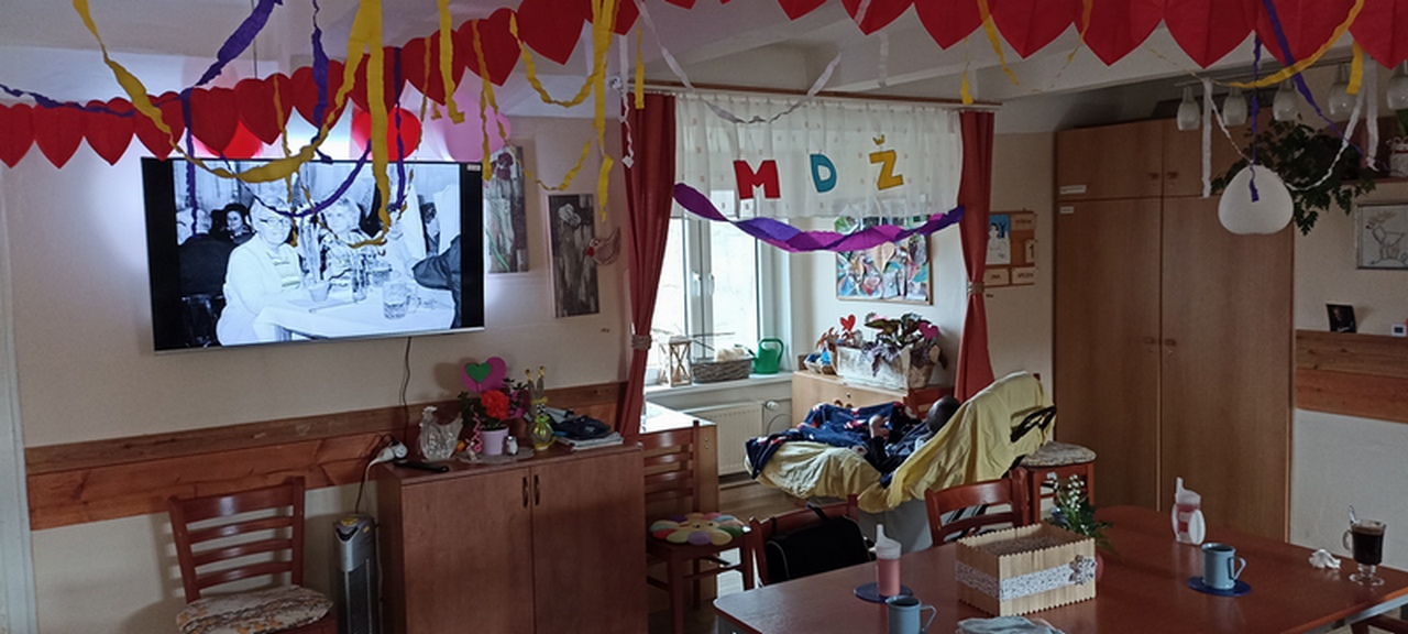 V Domově Na Hrádku se oslavovalo v pátek, a to opravdu stylově. Nechyběl rudý karafiát pro každou ženu, krásná výzdoby, hudba, vzpomínky, a to vše u dobrého občerstvení.