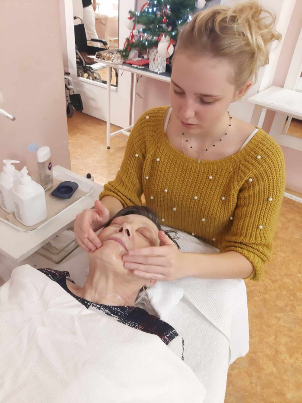 Dvě krásné dopoledne našim klientkám připravily studentky kosmetiček a kadeřnic SOŠ a SOU řemesel Kutná Hora. Velmi děkujeme paní Barboře Strnadové – učitelce odborného výcviku, která s vedením školy vše domluvila a Ježíškova vnoučata díky ní mohla přání plnit. Návštěvy byly velmi emotivní a na obě strany obohacující. Vážíme si, s jakou pokorou a citem se děvčata přání zhostila plnit.
