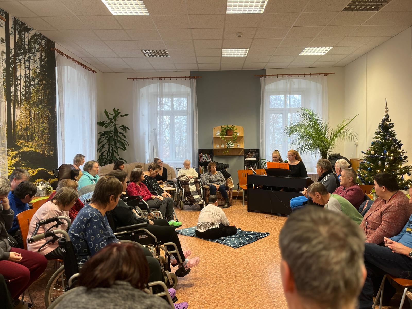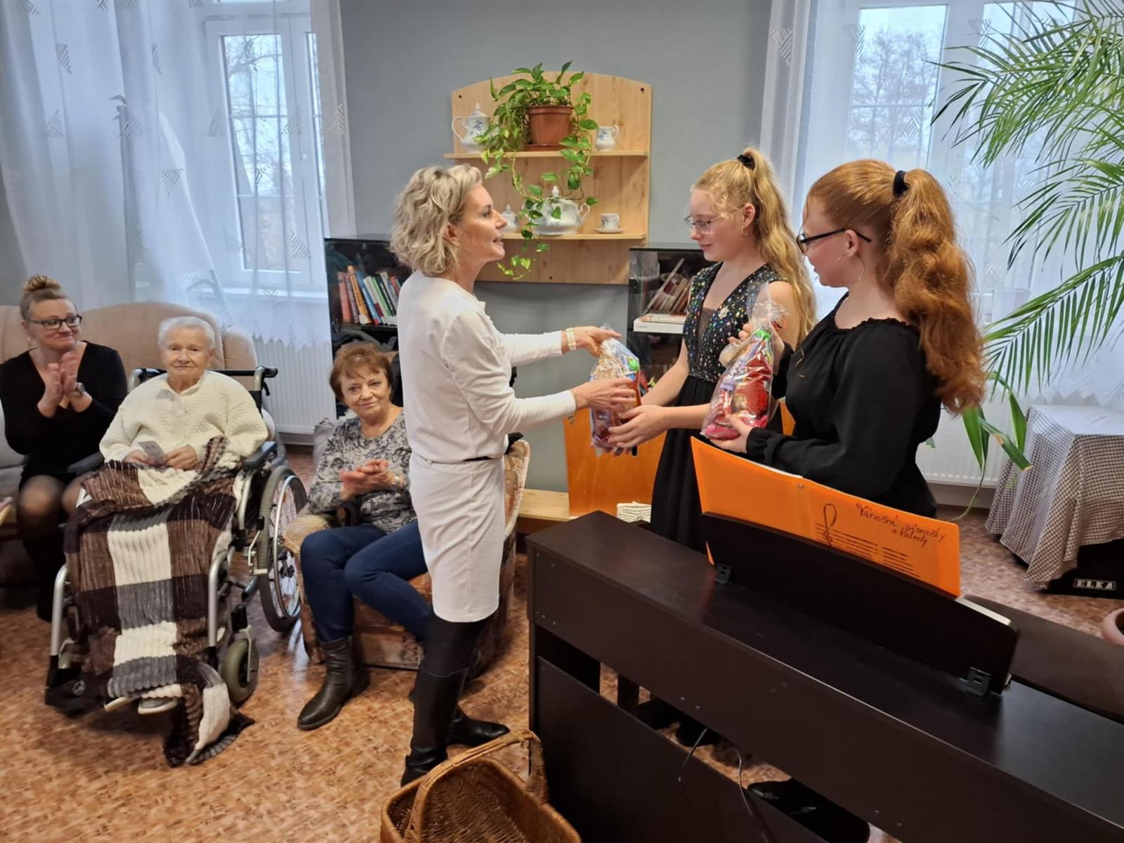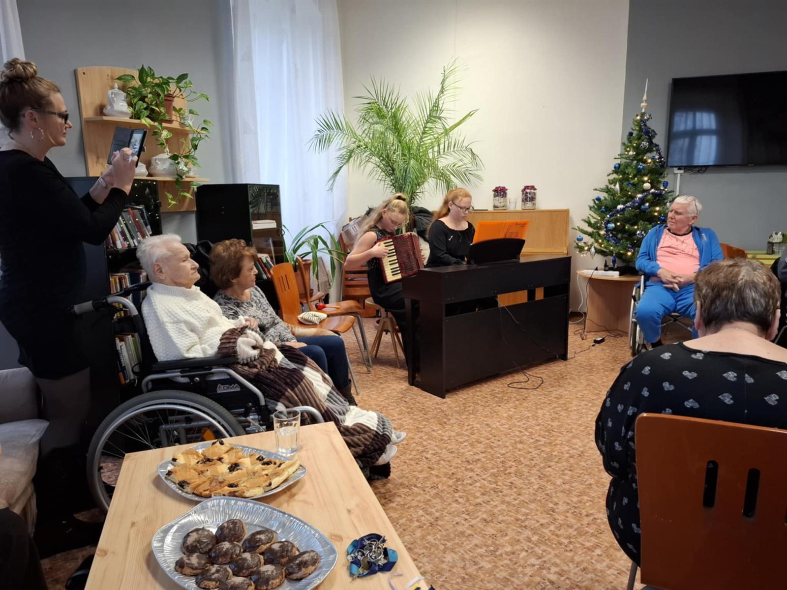 Vánoční atmosféru nám přijely zpříjemnit slečna Kristýna a Nikola Strasserová, pravnučky naší klientky. Setkání bylo velmi příjemné, na klávesy nám zahrály spoustu písní, v závěru jsme si všichni společně zazpívali. Pro klienty a zaměstnance přivezli dárečky, a to ručně vyrobené záložky s vánočním přáním. Děkujeme za velmi milou návštěvu a budeme s těšit na další setkání.