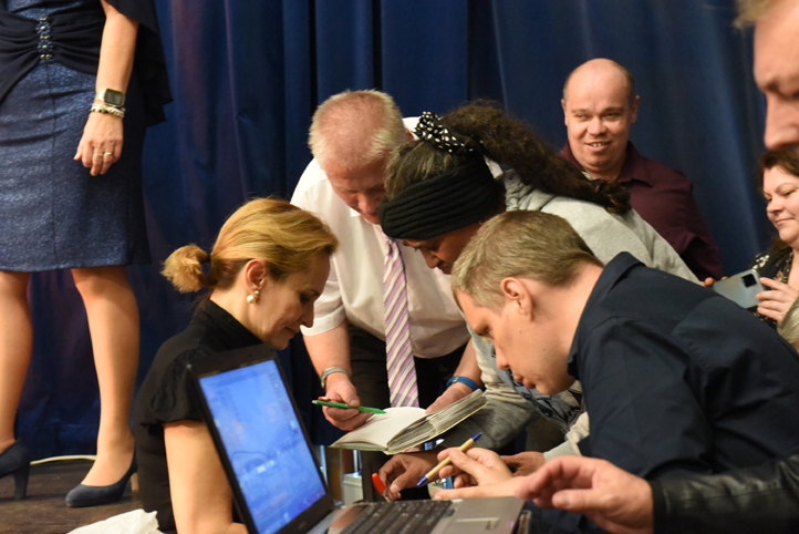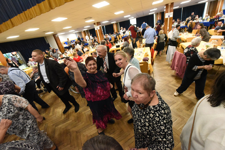 Celé odpoledne uváděl moderátor Slávek Boura. Ples zahájil společně s ředitelkou Domova Na Hrádku PhDr. Janou Pilnou, PhD. Na podiu vystoupila hejtmanka Středočeského kraje Mgr. Petra Pecková, radní pro oblast soc věcí Střed. kraje Mgr. Martin Hrabánek, starosta města Kolína Mgr. Michael Kašpar, náměstkyně ministra práce a sociálních věcí Mgr. Šárka Jelínková, předsedkyně Výboru pro sociální věci a zastupitelka kraje Mgr. Pavla Štrobachová, MPA a ředitel Městského společenského domu v Kolíně Zdeněk Hejduk. Pestrý program tak mohl odstartovat. Taneční klub Kocour Modroočko pod vedením paní Jolany Burešové na písně kapely ABBA zahájil ples předtančením, tytéž dívky následovně předvedly šperky značky Stefany paní Štěpánky Kurfiřtové s mottem ,,Každý šperk má svůj příběh“. Následoval tanec se psem paní Kateřiny Veinlichtové, trenérky, reprezentantky a aktivní závodnice dogdancingu u nás. Poté už přišla řada na hudební vystoupení, kdy se parket rázem zaplnil všemi nedočkavci. Vážený host Monika Absolonová předvedla, jak své muzikálové písně, tak plnila přání klientům. Při písničce z filmu Ledové království Najednou naskakovala přítomným husí kůže. Na závěr se zpěvačka ochotně na památku fotila a podepisovala. Jako díky dostala nádhernou kytici a dar vybíraný na míru dle jejího znamení. Následoval blok písní Karla Gotta v podání Míly Hartmana, který energicky a pro mnohé z nás k nerozeznání, zazpíval Mistrovy největší hity. Nesměl chybět patron Domova Na Hrádku zpěvák Stanislav Hložek, který účastníkům udělal radost největším hitem Holky z naší školky, Pohoda a dalšími písněmi. Nechyběla hudební skupina Maxíci, která ve svižném tempu pokračovala a nenechala účastníky odpočinout. Celým odpolednem provázela nepostradatelná kolínská kapela Míly Hartmana - Eso se zpěvačkou Ladislavou Červínovou a kytaristou Jiřím Červínem. Nesmělo chybět vyhlášení vítězů taneční soutěže „Nejlepší taneční pár“ a „Podzimní škrpál“, soutěž o nejlepšího tanečníka a tanečnici. Vybrat mezi tolika skvělými tanečníky a tanečnicemi nebylo vůbec jednoduché, hodnotné ceny nakonec putovaly do zařízení Zvoneček Bylany, Domov Pod Lipami Smečno a Domov Háta. V průběhu večera byla možnost zakoupit lístečky štěstí, kde čekalo v tombole mnoho krásných cen. Na doplnění energie bylo na stolech připraveno občerstvení a podávala se večeře v podobě tradičního řízku s bramborem.